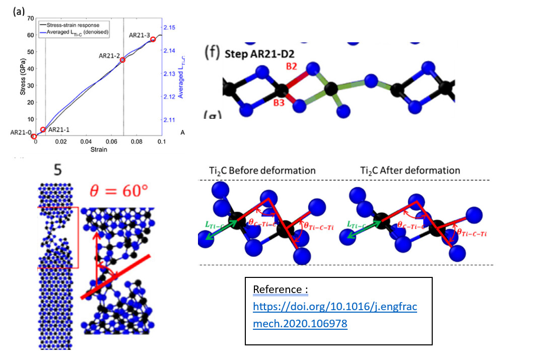 Visualization of bond length changes at specific timesteps (similar to deformation snapshots shown in the image)