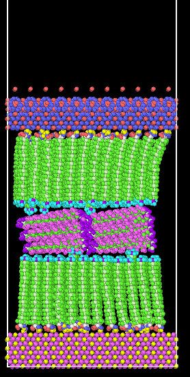 Hello,everyone, this is Rufer. I am modelling lubrication of hexane and Stearic acid confined in iron oxide slab as article( Nonequilibrium Molecular Dynamics Simulations of Organic Friction Modifiers Adsorbed on Iron Oxide Surfaces) mentioned. I use Berro’s model to simulate iron oxide: the Fe and O atoms are attached together by harmonic spring as mentioned below: