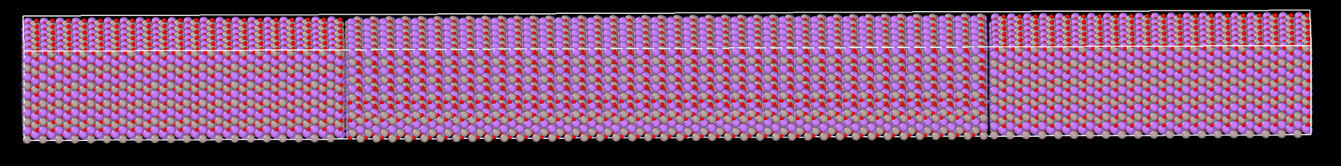 I am using heat add/subtract method to get a temperature profile across LiAlO2 using ReaxFF potentials for single crystal and bicrystal with grain boundary. Here, 0.0005 eV heat is added at the two ends/step and -0.001 ev/step heat is subtracted from the center. The shape is long in x direction as shown below: