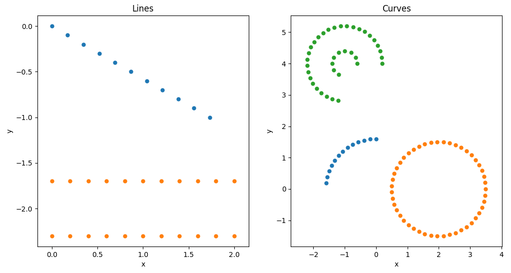 To resolve this problem, I developed a Python package geoparticle for easy construction of geometries where smooth surfaces are required. Miscellaneous geometries are provided, including 1D geometries (lines and curves):