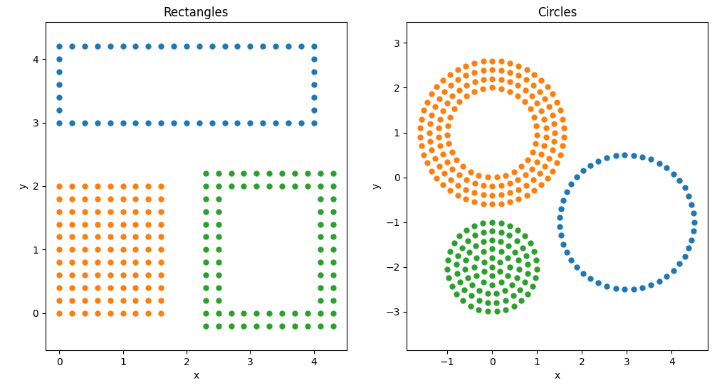 2D geometries (rectangles and circles):