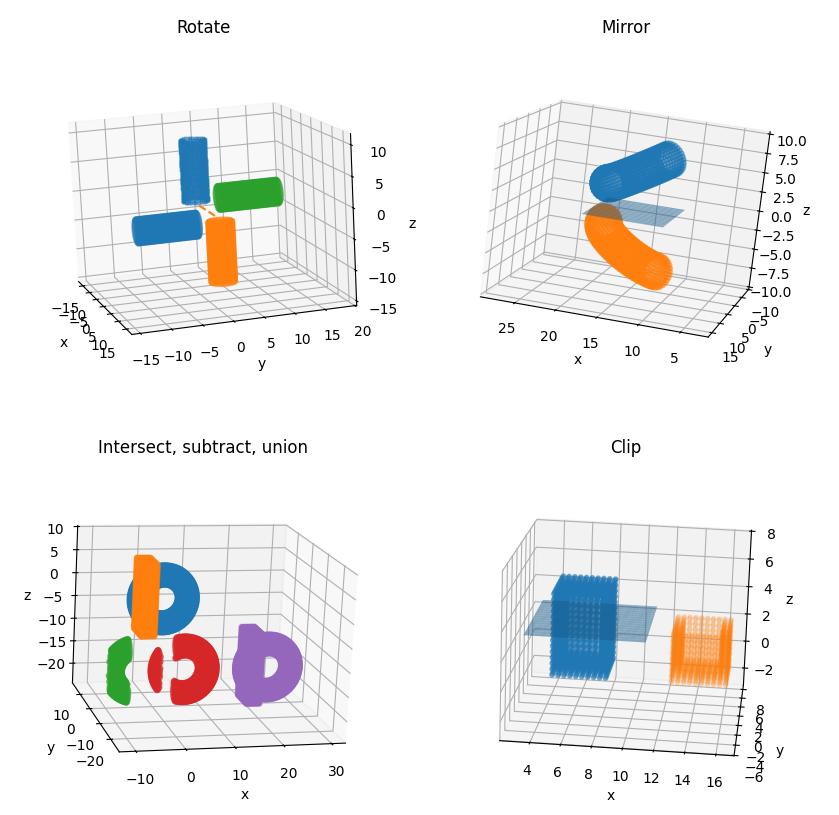 Diverse operations are also provided, including translation, mirror, rotation, stack, clipping, union, intersection, and subtraction.
