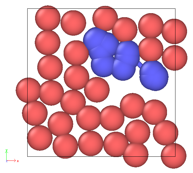 I then attempted to “reset” the system by writing a new data file using write_data in an initial script (see “test1.lmp”) and reading it again in a subsequent script (see “test2.lmp”). My hope was that this would erase any information from the problematic read_data stage. Despite this, even with a fresh data file created through write_data—where no distinction should exist between atoms of type 4 in the Atoms section—the polymer atoms continued to overlap, while the newly created type 4 atoms still repelled one another.