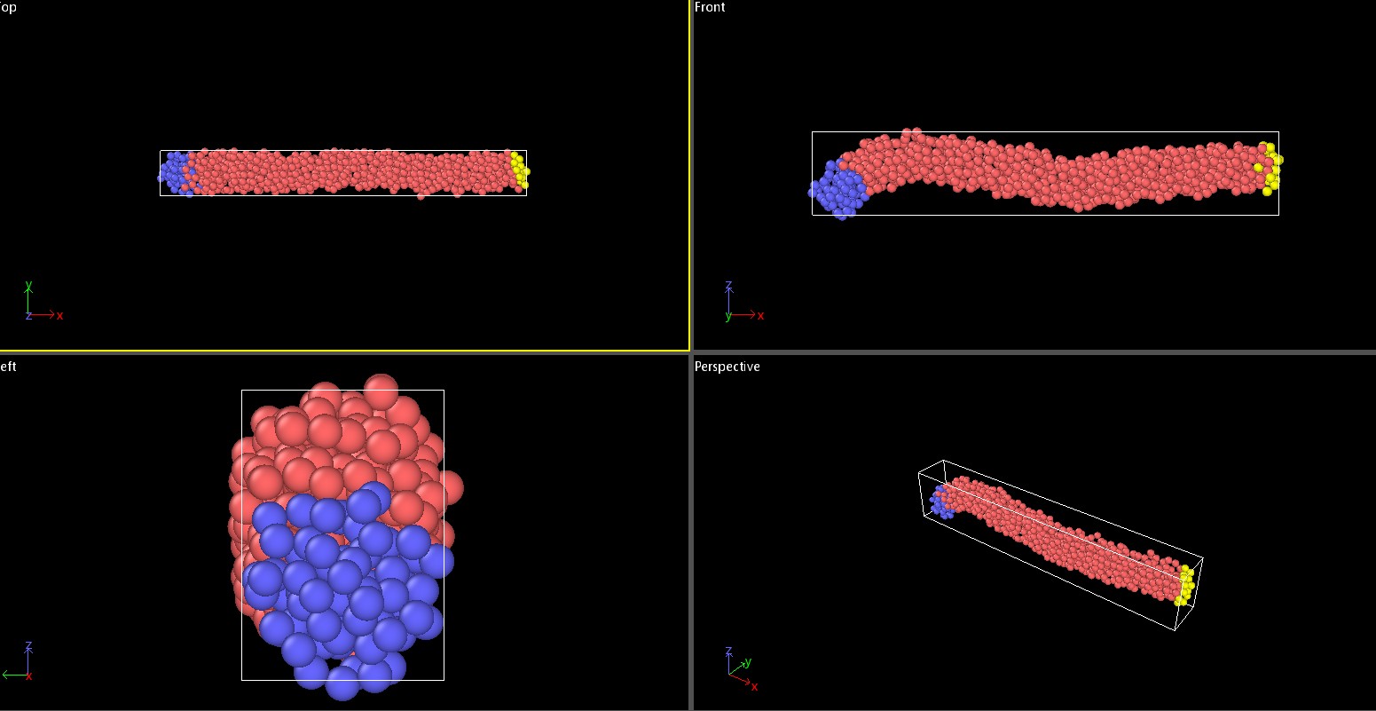 Right after the equilibration step (the initial long run), the straight nanobeam spontaneously deforms into a weird shape before I start the bending run. This deformation happens immediately after equilibration and corrupts my bending results.