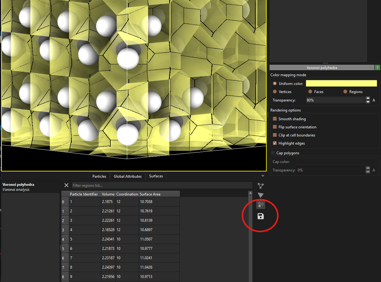 I want to output the voronoi surface area. The voronoi polyhedra calculates the surface area, but I don’t know how to out put them.