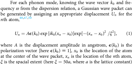 According to the authors, the wave packet (displacement of atoms Un​) can be generated using the following equation: